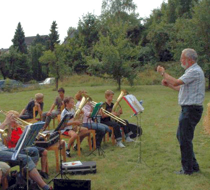Privat leite ich den Posaunenchor in Oberweimar, der über ein breites Spektrum von Klassik bis Swing verfügt und in dem sich alle Generationen versammeln. Die meisten Chormitglieder sind von uns ausgebildet worden. |